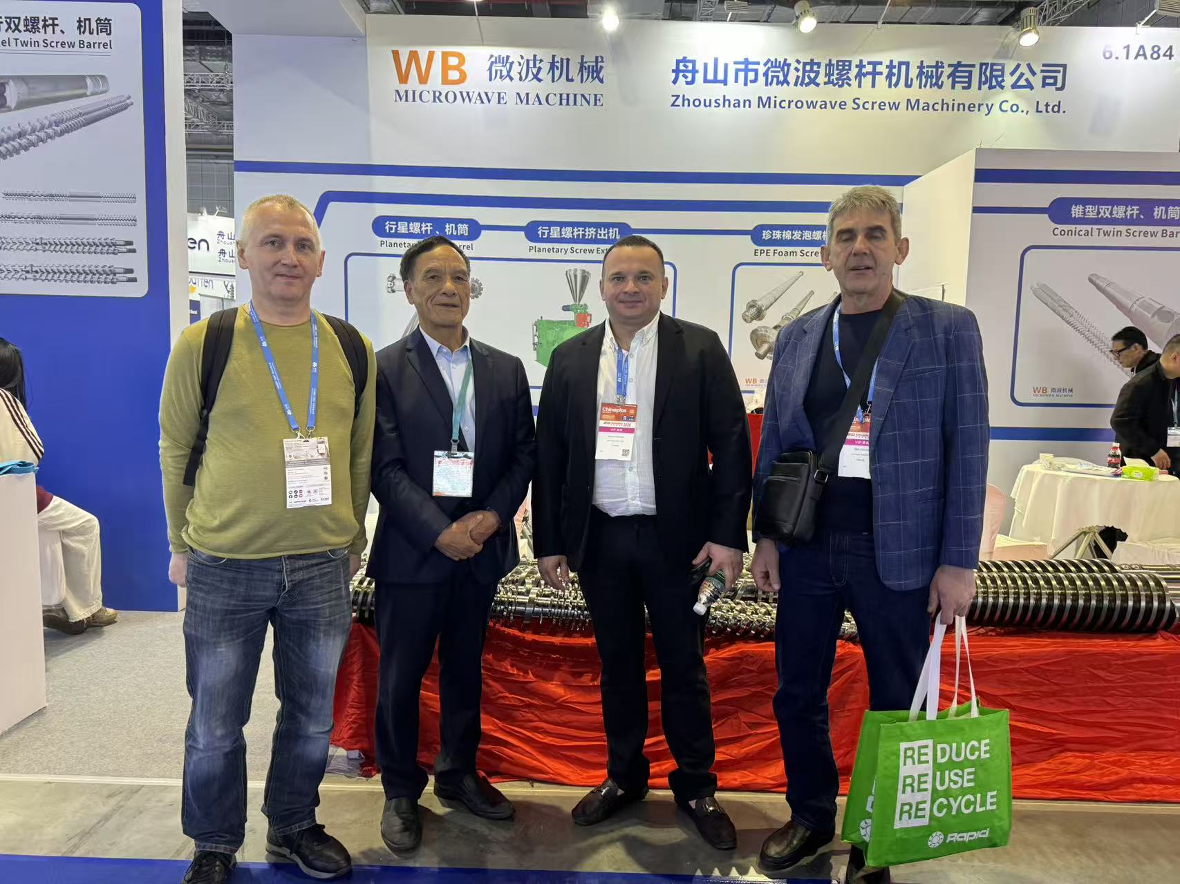 Zhoushan Microwave Screw Machinery Co., Ltd. প্রদর্শনীতে তার মূল প্রযুক্তি পণ্য, WB মাইক্রোওয়েভ মাইক্রোওয়েভ স্ক্রু এক্সট্রুডার প্রদর্শন করেছে, দ্বিতীয় দিনে (22শে এপ্রিল) এবং তৃতীয় দিনে (23শে এপ্রিল) বিপুল সংখ্যক শিল্প ক্রেতা এবং পেশাদার দর্শকদের আকর্ষণ করেছে৷